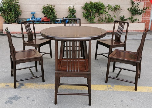 黑紫檀明式簡約圓臺配梳子餐椅